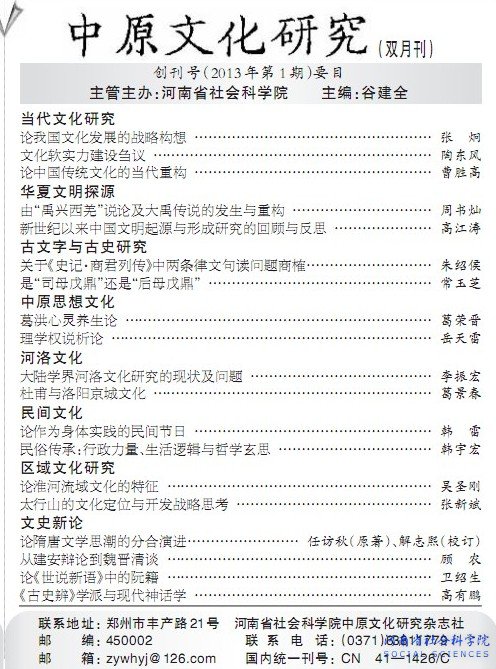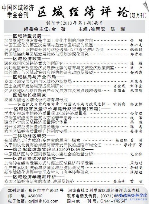 《区域经济评论》《中原文化研究》创刊号(2013年第1期)要目