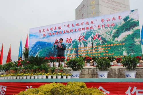 4月16日,省直文明办举办的“有色地矿之春”登山比赛暨“迎世博迎亚运讲文明树新风”系列活动启动仪式在嵩山世界地质公园隆重举行。中央驻郑单位、省直机关各厅局、郑州各大专院校等230多个单位(部门)近1600人参加。院机关党委组织我院8名职工参加,图书馆认真组织参加此次活动,由王超副馆长作为领队,带领张守民,李大信,张攀三名同志参加。在登山比赛中,我馆参赛的队员不怕劳累、不惧路险、相互鼓励、奋力拼搏,和其他队员一道全部到达山顶,并取得较好的成绩。